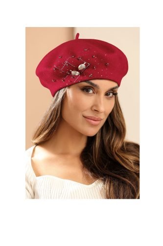 Unikali moteriška beretė KORIA pagaminta iš aukščiausios kokybės vilnos, sertifikuotos “Woolmark” ženklu. Vilna minkšta, tad tinka bet kokiai galvos formai. Rankomis puošta subtilia, blizgančia aplikacija, kurią sudaro sagė su riešutais, auksiniais perlais ir mirgančiais kristalais. Visa tai suteikia išskirtinumą šiam beretės modeliui.