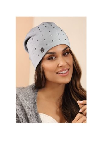 Jaunatviška, lengva kepurė CLAIRE pagaminta iš minkštos, elastingos, dvigubo sluoksnio medvilnės. Dekoruota metalizuotomis smulkiomis detalėmis. Nugarinėje kepurės dalyje – originali, stilizuota persidengiančio audinio siūlė, kuri suteikia kepurei purumo. Kepurė prisitaiko prie bet kokios galvos formos.