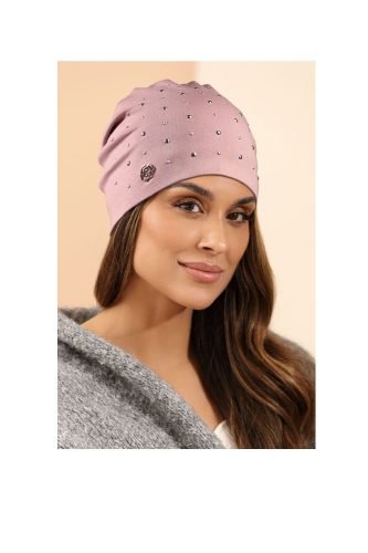 Jaunatviška, lengva kepurė CLAIRE pagaminta iš minkštos, elastingos, dvigubo sluoksnio medvilnės. Dekoruota metalizuotomis smulkiomis detalėmis. Nugarinėje kepurės dalyje – originali, stilizuota persidengiančio audinio siūlė, kuri suteikia kepurei purumo. Kepurė prisitaiko prie bet kokios galvos formos.