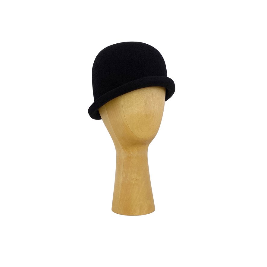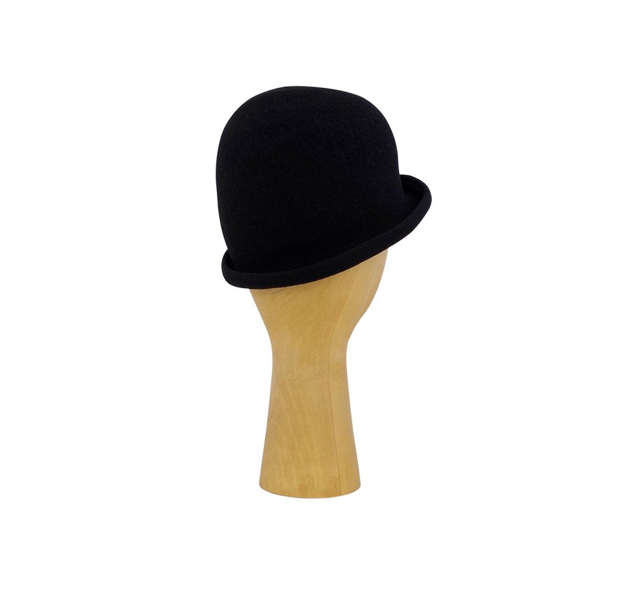 Bowler stiliaus, katiliuko formos, moteriška kepurė ONIKIE pagaminta iš aukščiausios rūšies natūralios vilnos. Gili, pusrutulio formos kepurė su nedideliais į viršų palenktais kraštais.