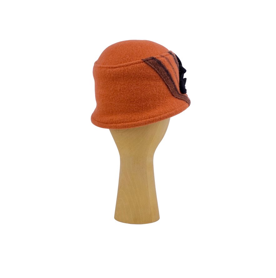 Moteriška kepurė ORMANSO pagaminta iš natūralios vilnos, atitinkančios aukštus Woolmark standartus. Šone dekoruota vilnone aplikacija bei įstrižai einančiomis juostomis. Kepurės kraštas sutvirtintas lankeliu, kas suteikia kepuraitei skrybėlaitės įvaizdį. Lengvas, žaismingas modelis.