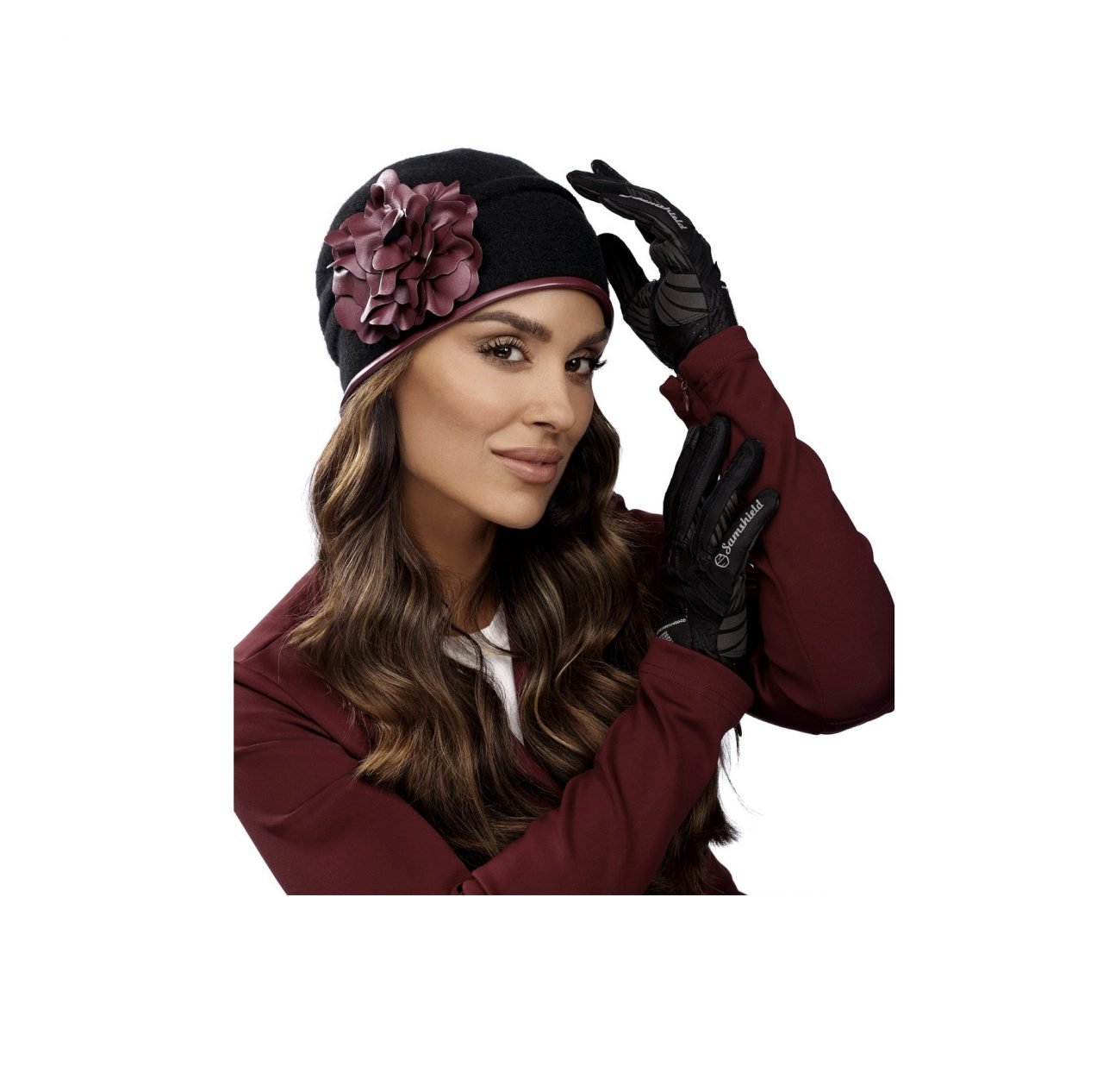 Rankų darbo, moteriška natūralios vilnos kepurė TIKANA, išsiskirianti savo elegancija ir rafinuotu stiliumi, neabejotinai suteiks žavesio jūsų kasdienei aprangai. Kepurė dekoruota odine gėlės aplikacija. Odiniame kantelyje yra siaura juostelė, kurios pagalba galima dar reguliuotis dydį. Gili, puikiai apgaubianti galvos formą.