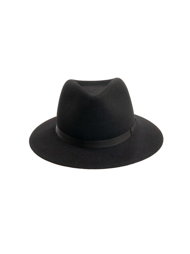 Aukštos kokybės Fedora vyriška, minkštesnio fetro skrybėlė 12661 – dekoruota siaura audinio juostele, su medžiagine prakaito juosta viduje. Skrybėlės kraštas palenktas, apsiūtas. Kraštinės plotis 6,5 cm.